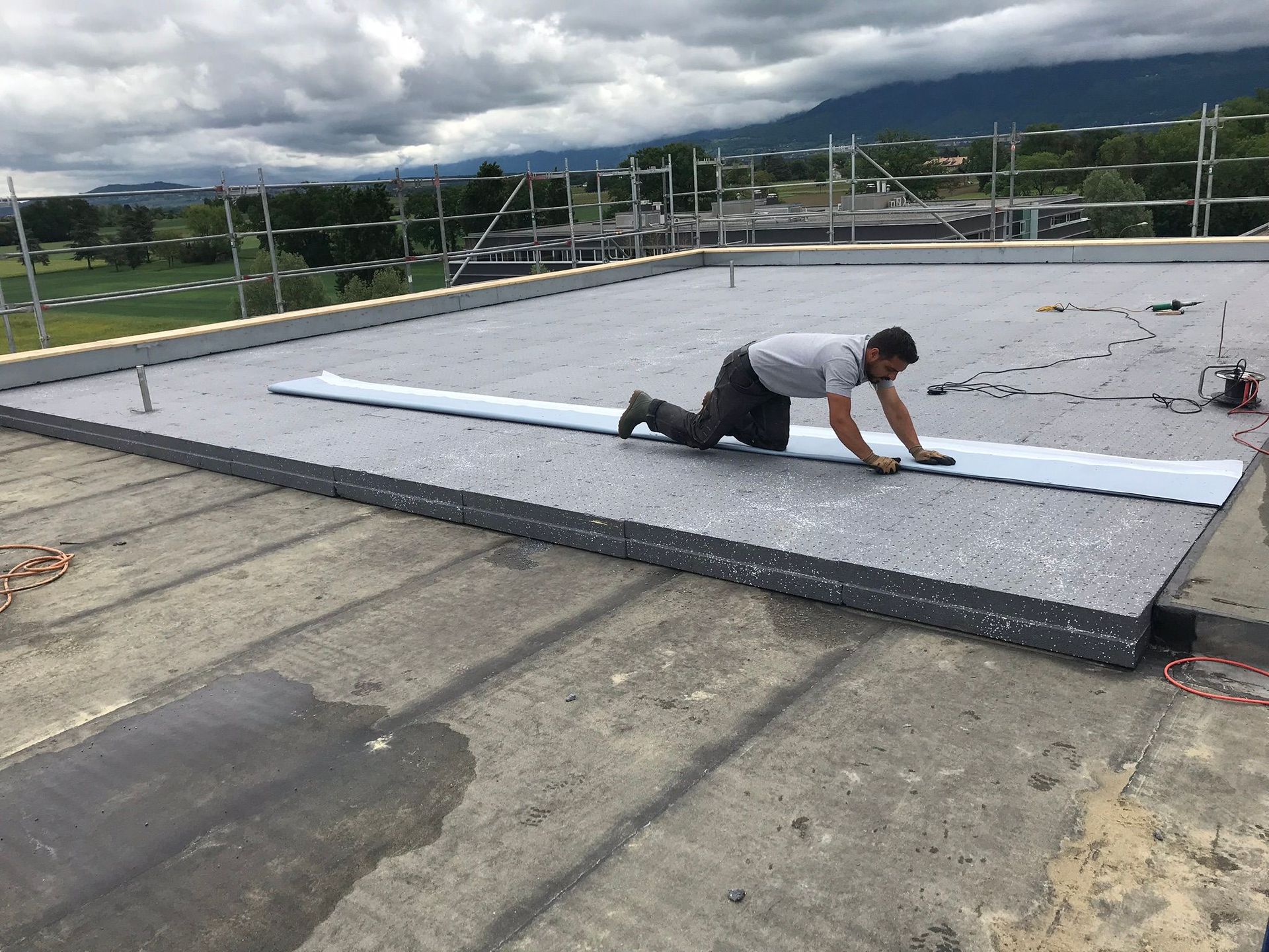 Domaine de prédilection de l'entreprise, la pose d'étanchéité et isolation sur toiture et de terrasse ainsi que l'entretien n'ont plus de secrets pour votre prestataire M Étanchéité.